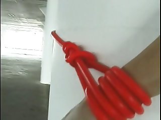 28:36 Blonde anal whore in red latex takes..