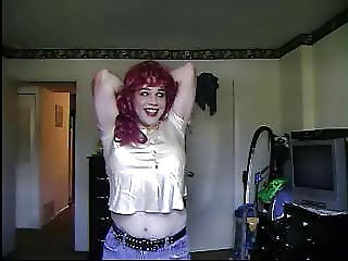 4:47 Shemale in red stockings freting